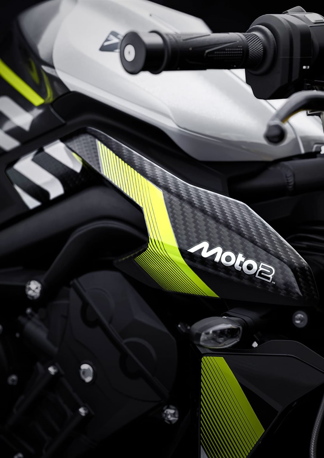 Mit hochwertigen Kohlefaserkomponenten, exklusiver Moto2-Lackierung und einem individuell gestalteten TFT-Startbildschirm zelebriert die Street Triple Moto2 Edition Triumphs exklusive Partnerschaft mit der Moto2.